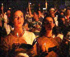 Kiedy zapadła noc młodzież zapaliła około miliona świec.