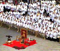 | Do św. Józefa przybyło dziś wielu pielgrzymów. Już wspominałem o Ruchach Obrońców Życia, o Instytutach Rodzin. Pragnę teraz szczególnie pozdrowić wielką pielgrzymkę z Łodzi, a równocześnie kieruję słowa pozdrowienia do pielgrzymów z Kazachstanu. Opiece św. Józefa oddaję cały nasz naród, zwłaszcza nasze rodziny, rodziców, młodzież, dzieci, ludzi chorych i cierpiących. Niech św. Józef, swym orędownictwem u Jezusa Zbawiciela wyprasza Polsce potrzebne łaski. Wszystkim wam mówię: Bóg zapłać! za wspólny udział w Eucharystii i na końcu, udzielając błogosławieństwa, polecam Bożej opiece wasze miasto i wasz Kościół! |
