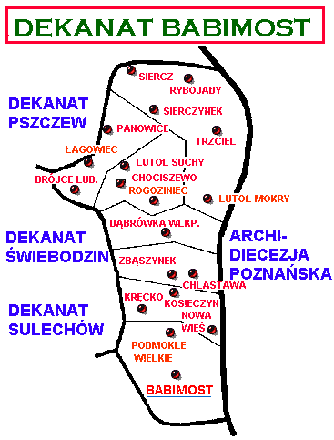 | 1. Babimost 2. Drezdenko 3. Głogów (św. Mikołaja) 4. Głogów (NMP Królowej Polski) 5. Gorzów Wlkp. (Chrystusa Króla) 6. Gorzów Wlkp. (Katedra) 7. Gorzów Wlkp. (Trójcy Świętej) 8. Gubin 9. Kostrzyn | 10. Kożuchów 11. Krosno Odrz. 12. Lubsko 13. Łęknica 14. Nowa Sól 15. Pszczew 16. Rzepin 17. Sława 18. Strzelce Krajeńskie | 19. Sulechów 20. Sulęcin 21. Szprotawa 22. Świebodzin 23. Wschowa 24. Zielona Góra (św. Jadwigi) 25. Zielona Góra (Narodzenia NMP) 26. Żagań 27. Żary |