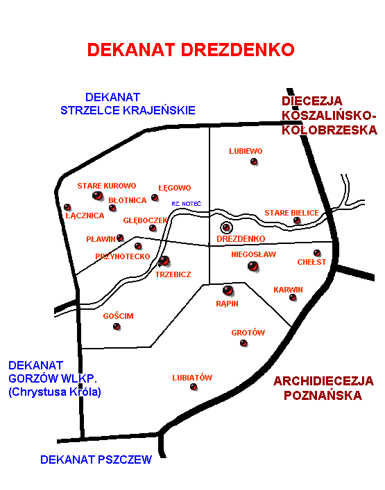 | 1. Babimost 2. Drezdenko 3. Głogów (św. Mikołaja) 4. Głogów (NMP Królowej Polski) 5. Gorzów Wlkp. (Chrystusa Króla) 6. Gorzów Wlkp. (Katedra) 7. Gorzów Wlkp. (Trójcy Świętej) 8. Gubin 9. Kostrzyn | 10. Kożuchów 11. Krosno Odrz. 12. Lubsko 13. Łęknica 14. Nowa Sól 15. Pszczew 16. Rzepin 17. Sława 18. Strzelce Krajeńskie | 19. Sulechów 20. Sulęcin 21. Szprotawa 22. ¦wiebodzin 23. Wschowa 24. Zielona Góra (św. Jadwigi) 25. Zielona Góra (Narodzenia NMP) 26. Żagań 27. Żary |